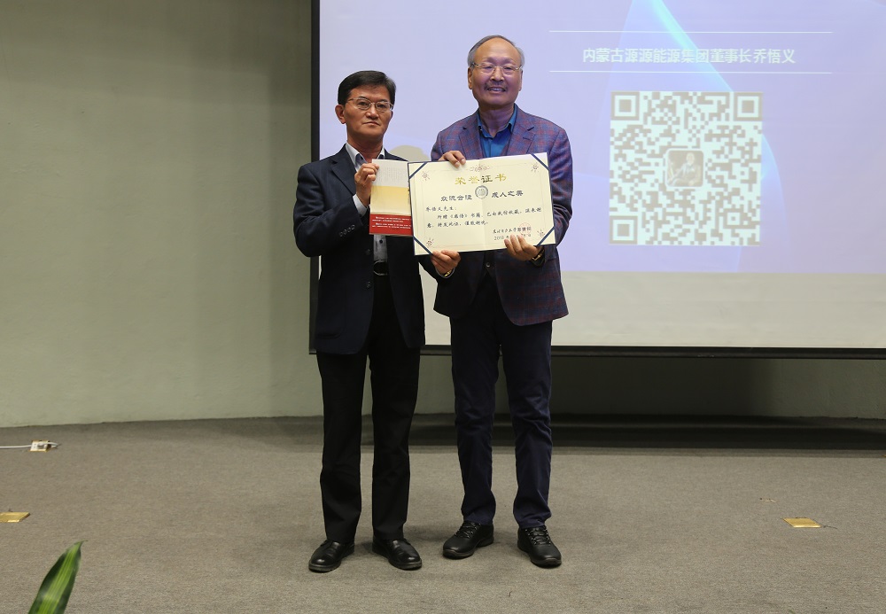 東北電力大學(xué)領(lǐng)導(dǎo)授予董事長喬悟義文化講堂獎牌